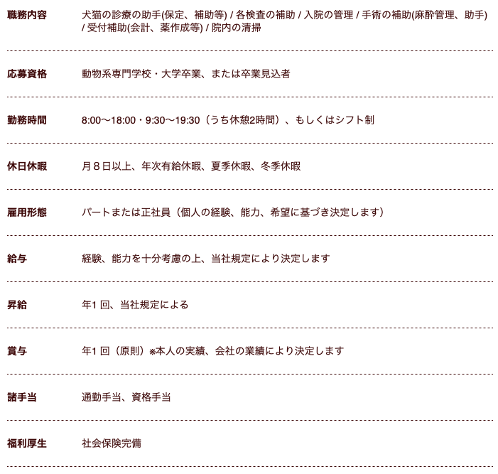 当院では一緒に働いてくださる【愛玩動物看護師】を募集しています。